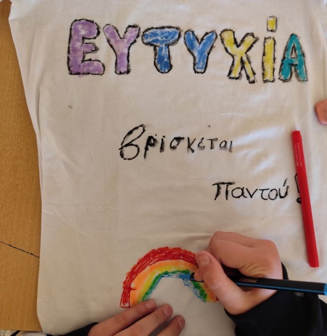 Δευτέρα, 16.02.26: Στις 15 Φεβρουαρίου ήταν η Παγκόσμια Μέρα Παιδικού Καρκίνου. Στα πλαίσια αυτού του εορτασμού πολλά σχολεία ασχολήθηκαν με διάφορες δράσεις σχετικές με την ευτυχία και τι μας κάνει ευτυχισμένους. Σλόγκαν τησ εκστρατείας αυτής: "Εθελοζούμε, φωτίζουμε, αλλάζουμε". Το σχολείο μας, παίρνοντας μέρος σε αυτή την καμπάνια, ετοίμασε φανέλες ζωγραφισμένες από τους μαθητές στο μάθημα της τέχνης κι άπλωσε μπουγάδα προσφοράς κι ευτυχίας! Εκπαιδευτικοί και μαθητές ήταν ενθουσιασμένοι με τη δράση αυτή!